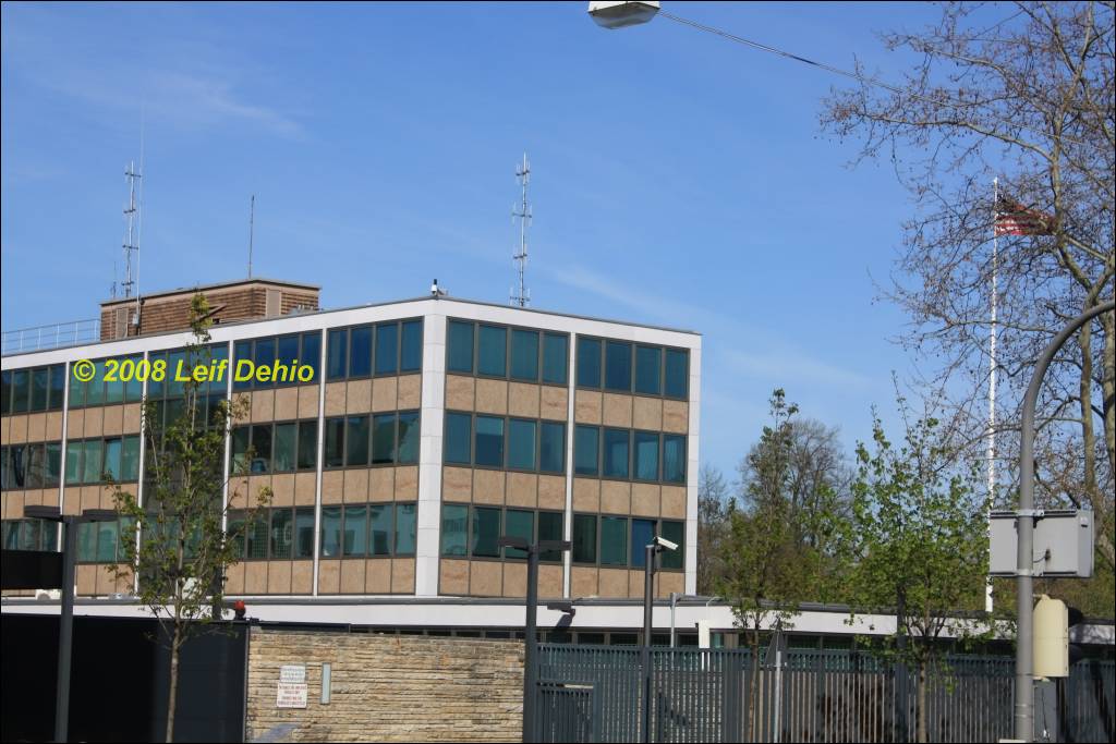 FAA 5522 HF whip antenna and several V/UHF antennas on consulate roof