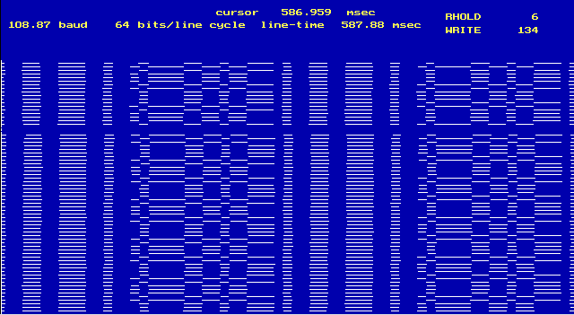 spread over a large time span. This bitspread creates a diagonal "slant"