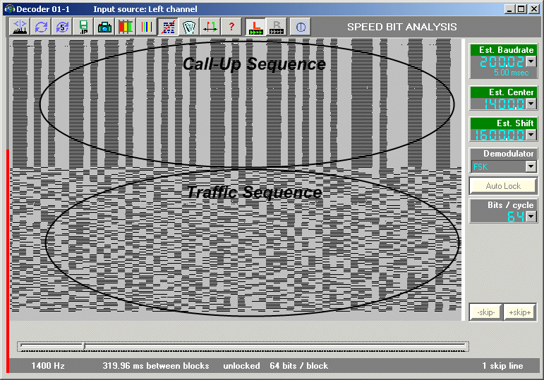 sequence and then sending message traffic (64 bits per line)
