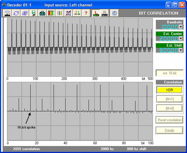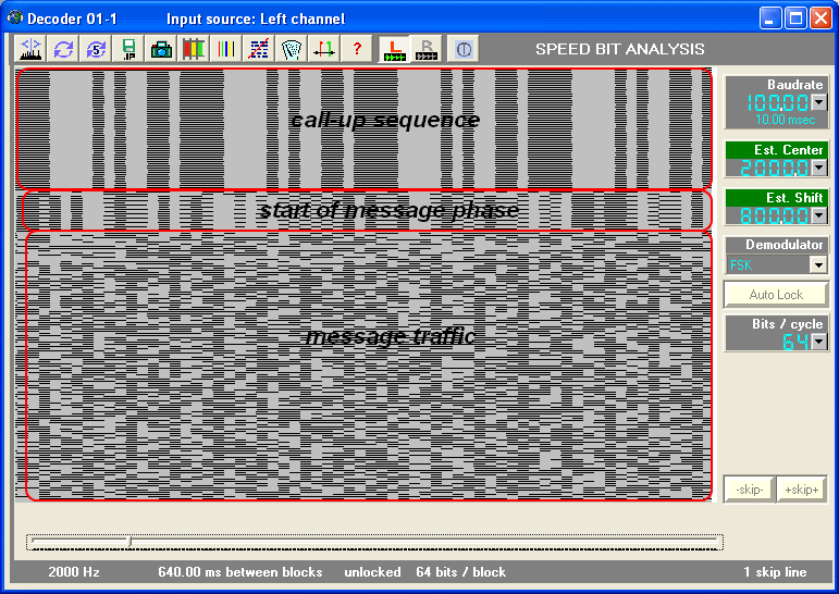 At the start of the actual message, the 16 bit pattern disappears and is replaced by a distinctive 64 bit pattern: