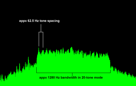 FFT-spectrum vs. frequency and signal intensity (20-tone mode)