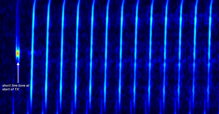 related ionospheric sounder as seen on a wide band receiver: