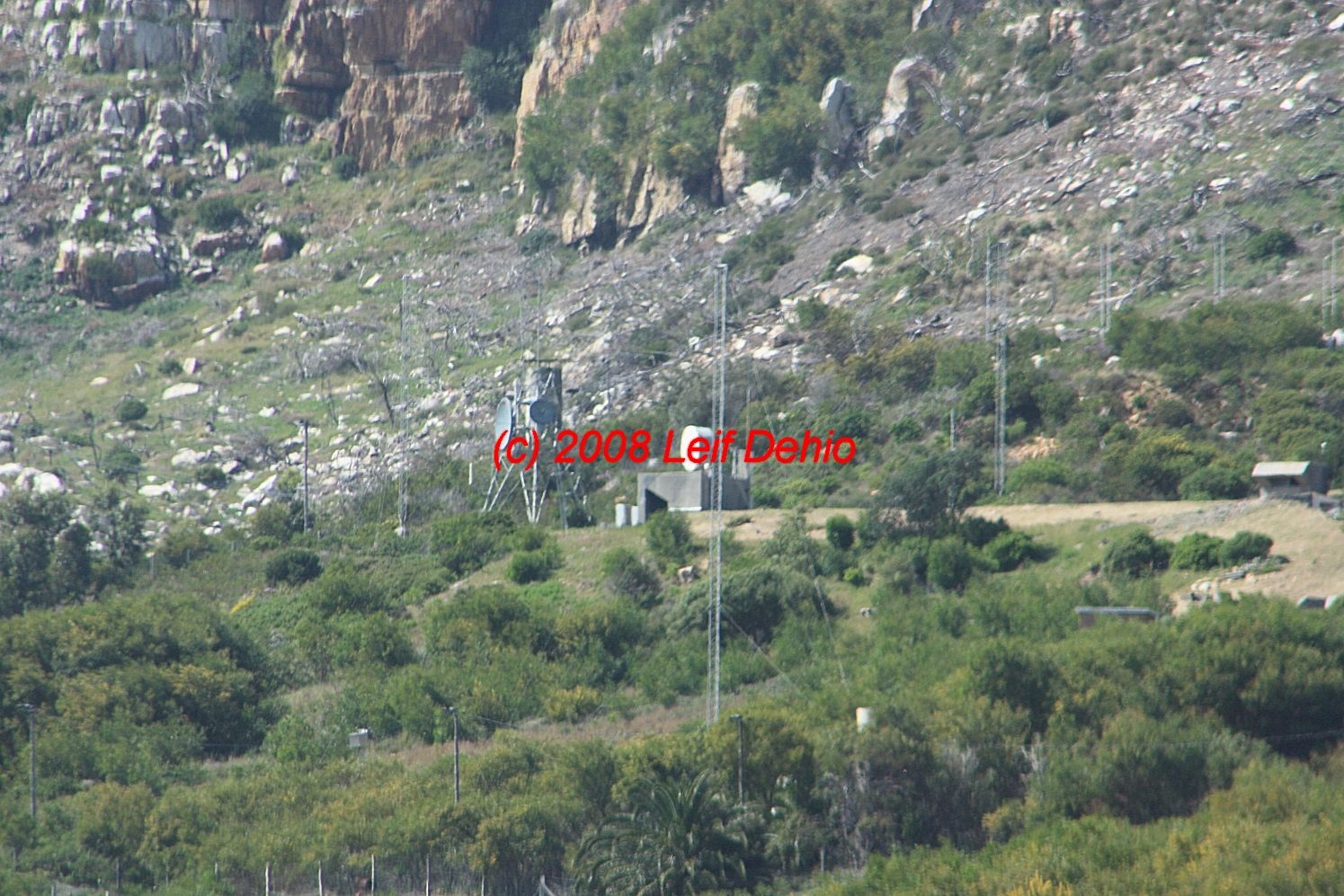 Various microwave dishes and a verically polarized wire Log Periodic HF antenna