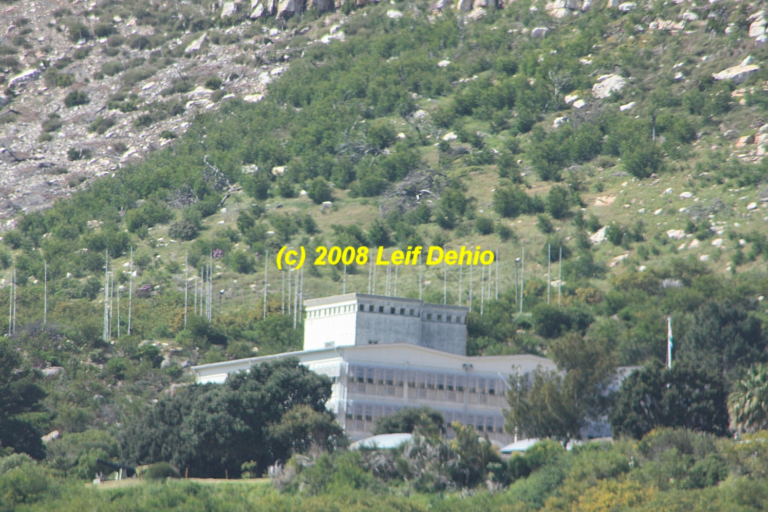 Main building with large HF antenna array in the background