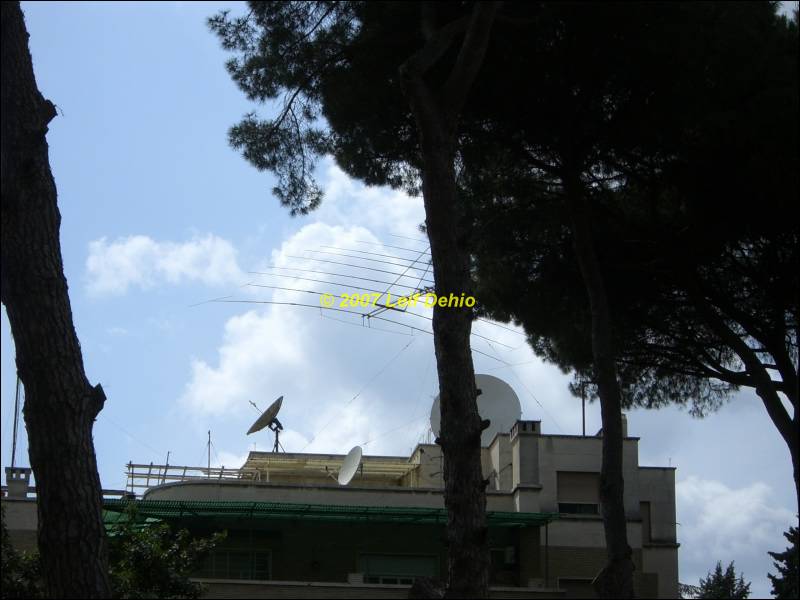 HF and SATCOM Antenna farm on the building