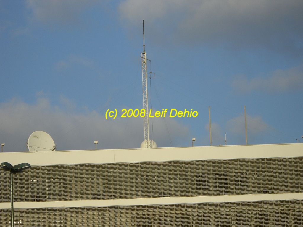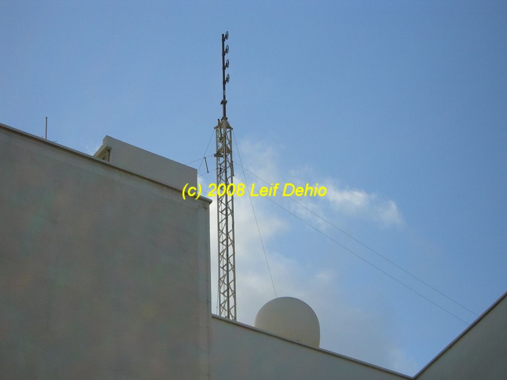 Satellite dish, HF folded dipole, UHF antennas and SATCOM radome